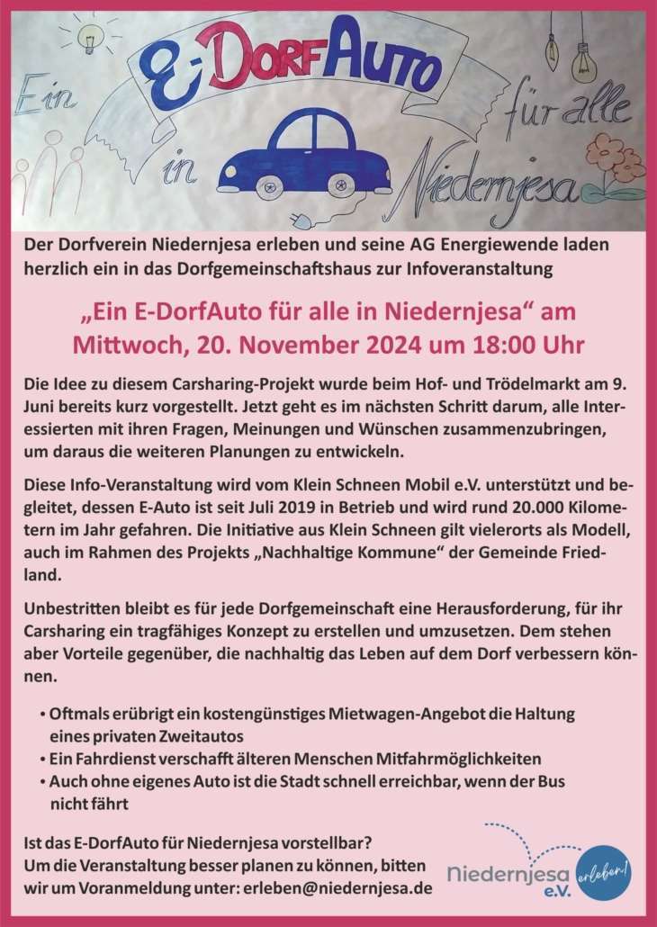 Ein E-DorfAuto für alle in Niedernjesa – Infoveranstaltung